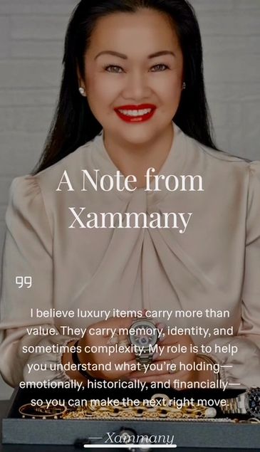 For years, I worked in high-end jewelry and timepieces, seeing clients rushed, undervalued, and misunderstood. I wanted to offer something different: a private space where your story matters. As a consultant, not a salesperson, I provide real guidance for those navigating emotional, personal, or financial transitions. If you're interested in learning more, feel free to contact us for email updates about our services, as we are launching soon. — Xammany